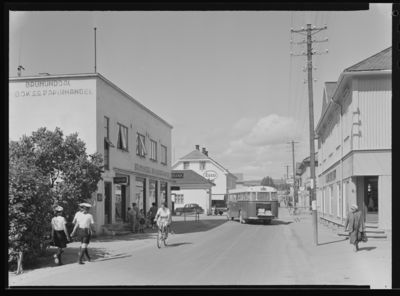 | Vi hadde stasjonen, Meieriet, Apoteket, Posthuset, nesten alle butikka, i hvert fall de som solgte sko. Kooperativen var hos oss, fiskebutikkene, kjøttbutikkene, Frelsesarmeen, Bedehuset, dessuten alt som kunne betegnes som fornøyelses- og uteliv. For mest alle kafeene (unntatt Skalmerud’n) var hos oss. Og så kinoen![14] | ||