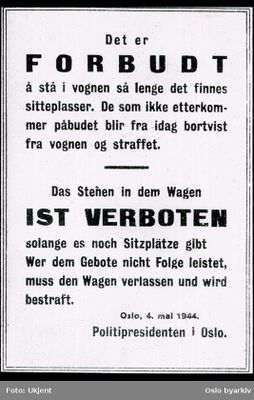 Holdningskamp på trikken – mange ville heller stå enn å sitte ved siden av tyskere.