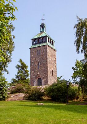Steintårnet ble tegna av arkitekt Rudolf Emanuel Jacobsen. Det er 16 meter høyt, med gesims elleve meter over bakken og et fem meter høyt koppertak med spir over dette. Det går en innvendig trapp opp til utsiktsplattformen.