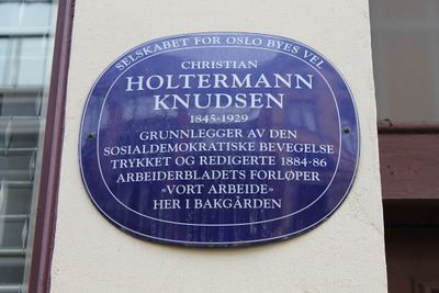 Christian Holtermann Knudsen fikk Kristiania Arbeidersamfunn over fra Venstre til Arbeiderpartiet i 1893. Samtidig utvidet han sitt trykkeri og fikk blant annet anbudet på statens frimerketrykking. I 1908 var Knudsen gjeldfri og ble med tiden en mer velholden mann.[19] Han tapte formannsstriden i partiet mot Ludvig Meyer i 1897 med én stemme, men fortsatte som sentral kraft i partiet og tok til orde for en knytning til Arbeiderpartiet da Arbeidernes faglige Landsorganisasjon (LO) ble dannet i 1899 med Knudsen som ordstyrer. Knudsen kom denne høsten inn i Kristianias bystyre, og ble sittende der i 27 år til 1926. Med årene vant han tverrpolitisk anerkjennelse for arbeidet i hovedstaden.