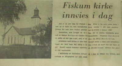 - Drammens Tidende 05/10-1942: Fiskum kirke innvies idag