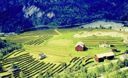 Loptet i Haugen vert oppgjeve til å vera frå 1600-talet. Det kan godt hende, men i så fall har det nok vore teke ned og sett opp på nytt ein eller annan gong i andre halvparten av 1700-åra, for fyre 1750 var alle lopt jarelopt, dvs at dei ikkje hadde stabbar eller grime under seg. Nå er det slik at denne byggjemåten for lopt fyrst og fremst høyrer heime i Telemark, og på den bakgrunnen bør ein kanskje opne for at dette huset kan ha blitt flutt hit, t.d. i Tarjei Vetlessons tid mot slutten av 1700-åra. Han hadde samband både til Byrte og Edland, veit me, og han var også ein som truleg hadde økonomi til loptsbyggjing. Men denne tanken er altså berre gjeting på grunnlag av forma på huset, og ingenstad stadfest. Foto: Aanund Olsnes (2005) Der inne, eller Haugen, er den eldste verestaden i Breive, og dermed utgangspunktet for alle dei andre.