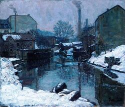 «Kristianiarealisten». Fra Akerselven. Målarstykke av Ivar Lund. Udatert. Nasjonalmuseet. Ivar Lund (fødd i Skjåk 17. januar 1871, død i Kristiania 22. februar 1904) var husmålar, kunstmålar og grafikar. Som kunstnar er han mest kjend for ei rekkje bilete frå fabrikk- og fattigstrok langs Akerselva i Kristiania. Kjent er også debutmåleriet på haustutstillinga 1899, «Husandagt», som portretterer foreldra og gjev eit innsyn i den kristelege heimen han voks opp i. Han døydde ung, og fekk berre sju-åtte år som kunststudent og utøvar. Han vart funnen omkomen aleine på hybelen sin, råka av blodstyrting, utan at nærare diagnose er klårlagd. Les mer …