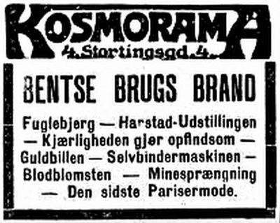 - ↑ "De første filmfremvisningene" på stumfilm.no. Oppsøkt 25.11.2010.