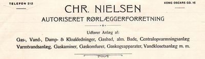 Chr. Nielsen rørleggerforretning holdt til i kong Oscars gate 16 i Bergen. Brevhode fra 1910.