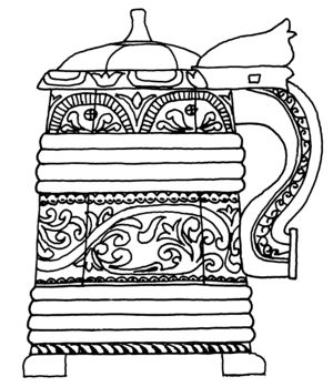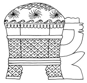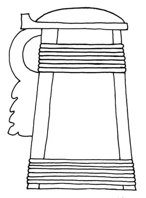 III. Høyt, smalt, lagget drikkekar med lokk og hank.