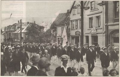 Mads Stausbøll begynte som omførselshandler, men slo seg ned i byen og var en driftig kjøpmann innen bekledning. Han startet her tidlig på 1900-tallet, flyttet så til Storgata 73 som sto ferdig i 1912. - Kristine Vesterlid åpnet i 1904 en vel ansett garn- og broderiforretning i Jungegården og også hun flyttet til Storgata 73 i 1912.