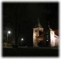 | Strømmen kirke med alleen fra Strømsveien. Foto: Steinar Bunæs (2004). | |