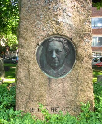 Helga Helgesen er gravlagt på Vår Frelsers gravlund i Oslo. Gravminnet er prydet med et bronserelieff av henne.