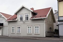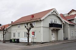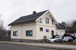 Opprinnelig horisontaldelt tomannsbolig, nå (2026) Nr 1 trafikkskole i første etasje.