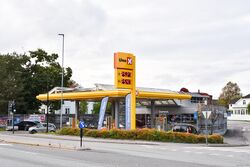 I januar 1967 godkjente bygningsrådet søknad fra Norsk Caltex Oil AS om oppføring av service- og bensinstasjon på Hesselbergs gate 32 og Bjørnstjerne Bjørnsons gate 1. Tre eldre trehus på tomta ble revet.[1] I juni 1996 åpnet Hydro Texaco AS Falkum trafikksenter, et nybygget bensin- og servicesenter tegnet av Kleiven Arkitekter AS.[2] Siden YX-stasjon og så Uno X-stasjon.