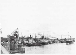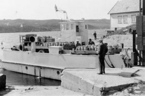 Bildet viser MS Bremnes, et skip i lokalfart bygd i 1949. Skipet tilhørte Hardanger-Sunnhordlandske Dampskipsselskap (HSD). Lasting og lossing foregikk vertikalt gjennom luker. Skipet gikk både i gods- og persontransport. Fortsatt var det liten antydning til den transportrevolusjonen som skulle komme.