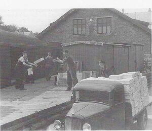 På neste bilde ser vi også multimodal transport når pakker ble sendt fra mann til mann på jernbanens pakkhus for å bli lastet opp på en godsbil.