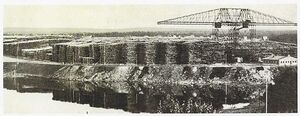 De følgende bildene er et lite utvalg fra jubileumsboken til A/S Borregaard 1889-1939. I boken skriver konsernet at bildene er dels fra eget arkiv, dels laget av Kristiania kemigrafiske anstalt as og A. B. Wilse. Det første bildet viser kranen på Oppsund. Kranen ruver over de mange høye stablene av tømmer til tørking.