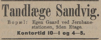 Det viste seg at han var lite sjøsterk, så det å følge i farens fotspor som fiskerbonde gikk ikke. Han kom i stedet i lære hos en gullsmed i Kristiansund. En av oppgavene gullsmedene hadde på den tida var å utføre gullarbeidet for tannleger. Dette var blant oppgavene lærlinger raskt kunne settes til, og Sandvig kom dermed i kontakt med tannlegeyrket. Han gikk over til tannlegelære hos tannlege Olsen i Kristiansund, og fikk etter hvert mulighet til å ta det siste året med utdanning i Kristiania. I 1883 hadde han en kort tid praksis på Gjøvik, for så å reise til Berlin for å videreutdanne seg hos hofftannlege R. Telschow. Under oppholdet i Tyskland ble det konstatert at han hadde tuberkulose, og Sandvig vendte tilbake til Kristiania. Han kom til hektene igjen, og i 1885 flytta han til Lillehammer og åpna tannlegepraksis der. Selv om ettertida husker ham best for hans museumsvirke, satte han også spor etter seg som tannlege. Han utvikla nemlig ei presse for produksjon av aluminiumsgebiss, en oppfinnelse som riktignok falt ut av bruk nokså raskt.