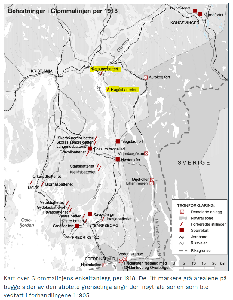 | 12. apr. 2026 kl. 13:28 | Glommalinjen per 1918.PNG (fil) | 482 KB | Steinar Bunæs | {{Filinformasjon |beskrivelse = Glommalinjen per 1918. |person = |tagg = |kilde = Forsvaret |dato = 1918 |opphavsperson = Ukjent |lisens = |andre versjoner = }} Kategori:Kart fra 1918 Kategori:Festningsverk Kategori:Grensebefestningene Kategori:Lillestrøm kommune Kategori:Fet | 1 | |