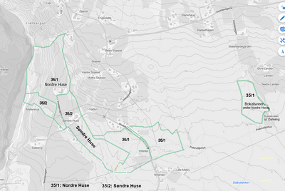 - 1886 Gardsnr. 35, løpenummer 196a, Huse med Bokalsveen og Huseholen lnr. 196b, Søndre Huse lnr. 196c.