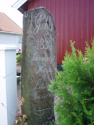Takknemmeligt Minde af Lillesands Indvaanere. Det står mer om byttesteiner eller grensesteiner under kulturminneløypa for omland øst.