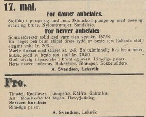1950: Reklamerer i Frostingen. Her kommer det godt frem hva forretningen kan tilby. Se bilde.[2]