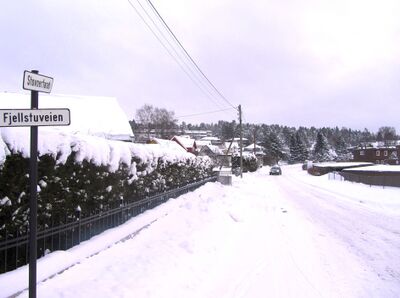 På sørsiden av veien ligger Stovner borettslag med rekkehus fra slutten av 1960-årene.