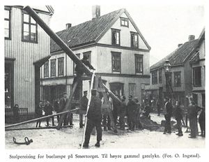 - tørfisken op fra sin baad paa bryggen, og underholder sine kammerater med historier fra Lofotfiskeriet. - Dette er nogle av de uligeartede elementer, hvorav handelslivet i Tromsøe er sammensat.»[2]