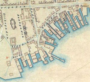 - Simonsenbrygga, Dreyer-, Meyer-, Jensen-, Thomassenbrygga, og så Torget og Aagaardbryggene. Høye, trauste lagerhus, til knes i sjøen på dryge stolper, bygd av saftig Målselvfuru