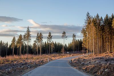 Drøye 100 meter før Almenningsveien passerer gården som har gitt navn til den, tar en skogsbilvei av mot nord. Denne ble anlagt omkring 2022–2023, og ender i en snuplass 460 meter sørøst for Bukkestitjern. Veien gir gode muligheter for turfolk til å ta seg videre til Bøleråsen og Oksrudveien.
