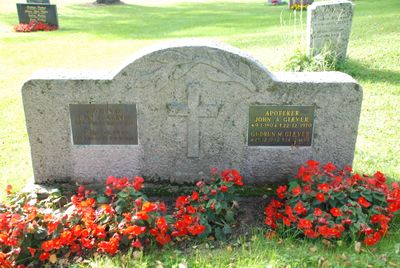 Gravminne for apoteker John Giæver og familie på Hoff kirkegard i Østre Toten.