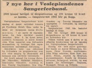 - På Vestoplandendes Sangerforbund sitt dirigentkurs fra 30. juni til 13. juli 1946 deltok Åsmund Svendsen fra Trevatn Mannskor.