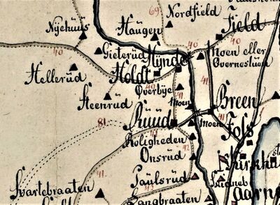 Amund Olsen, 56 år, er ført opp som husmann med jord under Rud ved tellingen 1801. Basert på notering i kirkebøkene bodde han på plassen Øvre Stenerud. Sammen med han var kona Johanne Jonsdatter på 60 år og to barn, Marie Amundsdatter 26 år og Jon Amundsen 24 år. Han opplyses å være psykisk syk og hadde almisse fra sognet. Han døde som legdslem på Botner i 1840 – 64 år gammel. Da barna ble født bodde familien på Moen, men kom altså hit etter Peder Hansen rundt år 1800. Marie døde våren 1801, og samme sommer døde faren Amund på plassen. To måneder senere gifter enken Johanne seg med Gullik Halvorsen – 49 år og tjenestedreng på Ramsøien.