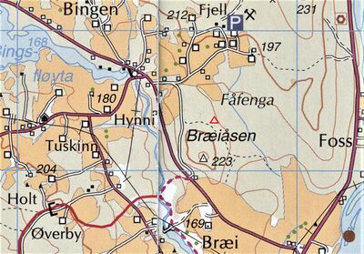 Aasen (Breenåsen) lå like nord for åsen med samme navn. Turkart fra Skakland-Vestsiden Utmarkslag (2002).