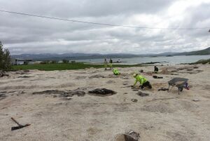 I løpet av etterjulsvinteren ble universitetsmuseet i Tromsø satt i beredskap for å undersøke en mulig gårdsbosetting fra jernalderen man hadde registrert i 2016. Anlegget ligger i nær tilknytning til det foran omtalte vegkrysset. Opprinnelig var det søkt om og avsatt 5 uker til å gjennomføre prosjektet. 22. mai 2023 ble et mannskap på sju med arkeologisk kompetanse satt på jobben med å søke å fravriste grunnens nær 2000 år gamle hemmeligheter langs E-10 og adkomsten til Rødskjær næringspark. De registreringer man hadde gjort i 2016 og de funn man først gjorde i mai-juni 2023 kunne tyde på at man sto overfor en gård fra eldre jernalder. I løpet av juni vippet tolkningene mer mot et ringtun, da en jernaldergård ikke ville hatt husene sine på rekke.
