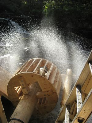 | Denne artikkelen er helt eller delvis basert på artikkelen «Vannhjul» fra Wikipedia på bokmål og riksmål og kan kopieres, distribueres og/eller endres slik det er angitt i lisenstekst for cc-by-sa 3.0. For en liste over bidragsytere til den opprinnelige artikkelen, se endringshistorikk knyttet til den opprinnelige artikkelen. For en liste over bidragsytere til denne versjonen, se endringshistorikk knyttet til denne siden. Artikkelen bør gjennomgås med tanke på tilpasninger til lokalhistoriewiki.no. Se Hjelp:Forskjeller fra Wikipedia for mer informasjon. |