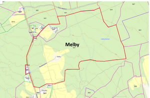 | 54. Melby. Ext. mæ´llby. ― Melbye 1669. Meelbye 1723.1/4.