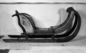 Slede, trolig fra Anders Rasmussens tid på Østre Dælin. Produsert 1776. Kilde: Anno Domkirkeodden, inventarnr. OF.2952.