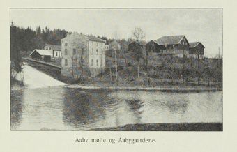 | Åby-gårdene og mølla. Fra boka Asker, utgitt 1917. | |