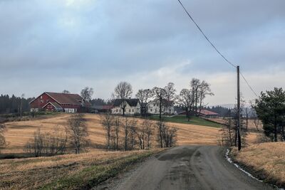 Åmotveien med gården Store Åmot i bakgrunnen.