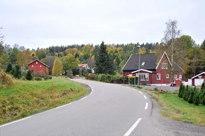Veien har navn etter Åsrum-gårdene og ble navnsatt i 1995. Foruten et boligområde på Lasken i begynnelsen av veien, består bebyggelsen av gårdsbruk og noen eneboliger.