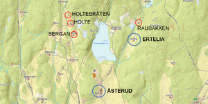 Bakken og Raubakken hørte til Ertelia, mens Bergan, Holte og Holtebråten hørte til Åsterud.