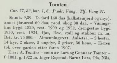 Østre Tomten (Vang gnr. 77/1) - se nedenfor