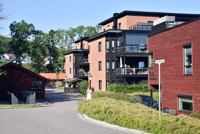 Veien har navn etter området Øvre Verksgård som var en del av Treschow-Fritzøes gamle industriområdet i Hammerdalen. Det ble omregulert til boligformål rundt 1999. 5 bygg med til sammen 40 leiligheter ble oppført ca. 2017.