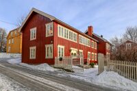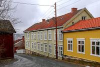- Engebretsengården, også kalt Holmgården, ligger i Storgata.Foto: Oskar Aanmoen (2025).