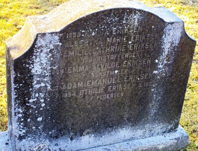 Adam Emanuel Eriksen er gravlagt i familiegrav på Vår Frelsers gravlund i Oslo. Tittelen Kunstmaler er benyttet på gravminnet.