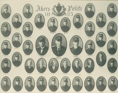 Akers kommunale Kalender for Aaret 1903 omtaler ikke politistyrken med noe eget etatsnavn, kun som «Politivæsenet». Her omtales også Akers politimesterembete og at politibetjentene ansettes av politimesteren. Lensmennene ansettes imidlertid av amtmannen, dog etter uttalelse fra foruten politimesteren, også herredsstyret, sorenskriveren og amtkassereren.