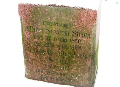 Albert Severin Strøm er gravlagt på Vår Frelsers gravlund i Oslo. Tittelen Distriktslæge er benyttet på gravminnet.