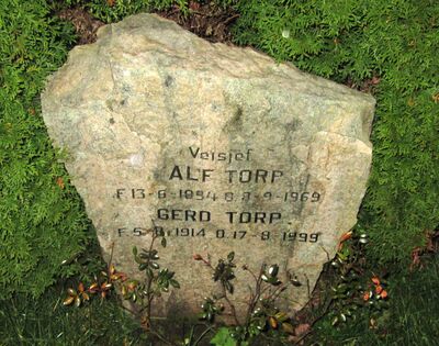 Alf Torp er gravlagt på Tønsberg nye kirkegård. Tittelen veisjef er benyttet på gravminnet.