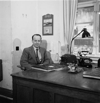 Selvportrett tatt ved skrivepulten på lønningskontoret Norsk Hydro på Rjukan.