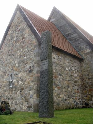 En bauta over Anders Hansen Grønneberg er reist ved Berg gamle kirke i Brunlanes.
