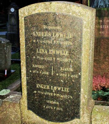 Anders Løwlie er gravlagt i familiegrav på Vår Frelsers gravlund i Oslo. Tittelen Disponent er benyttet på gravminnet.