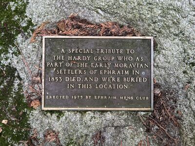I årevis lå øyas kirkegård glemt, men i 1975 fant Ephraim Men's Club det sannsynlige gravstedet og plasserte en plakett på en stein der det står: «A special tribute to the hardy group who as part of the early Moravian Settlers of Ephraim in 1853 died and were buried in this location.»[6][7] Moravian refererer til at ofrene tilhørte Brødremenigheten (også kalt Herrnhuterne).